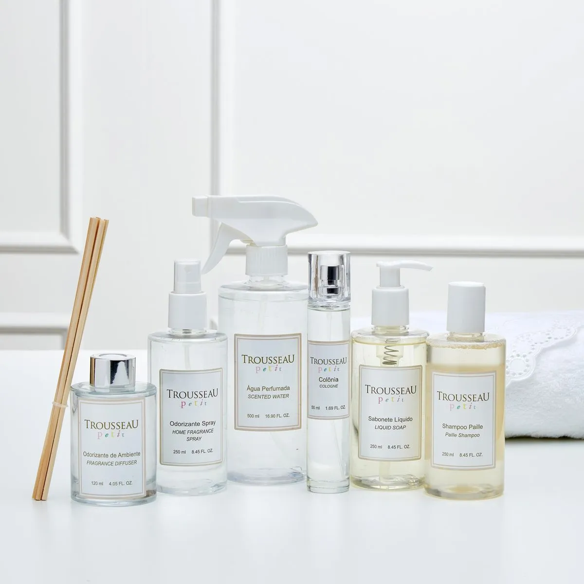 Colônia Infantil Paille Petit New Trousseau tem fragrância suave, pensada na delicadeza das crianças. É um aroma com saída floral de lavanda, bergamota e mandarina. No seu coração ficam as notas de jasmin e lírio do vale. No fundo nota-se a combinação da baunilha, sândalo, musk e cumaru. Perfume que traz leveza e aconchego, podendo ser encontrada também em Shampoo Infantil Paille Petit New, Sabonete Infantil Petit New, Odorizante de Ambiente Petit New com Varetas e Spray e Água Perfumada Petit New.