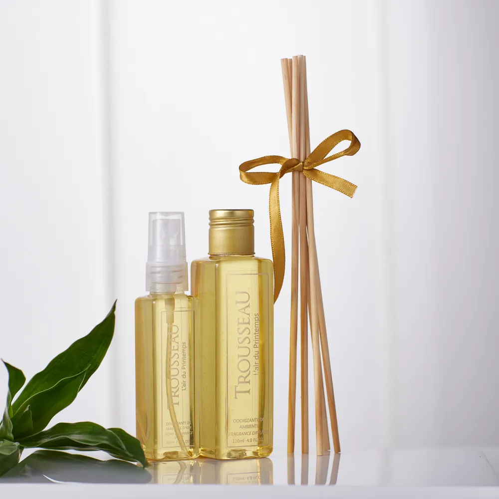 Inspirada na primavera, a essência L'air du Printemps é marca registrada da Trousseau, com cheiro agradável e sutil. Uma composição de aromas leves e notas sutis, entre elas limão espanhol, especiarias e um fundo amadeirado. Compre também o Odorizante de Ambiente com Varetas Printemps Guest 120ml.