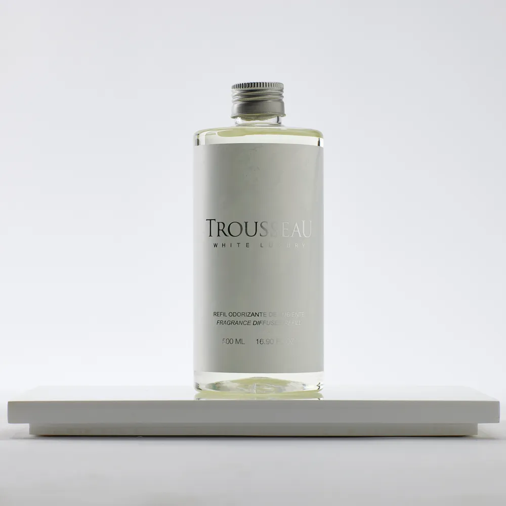 A linha White Luxury possui uma composição de aromas leves e sutis, entre elas Pêssego, Mandarin, Gotas de Orvalho, Jasmim e Chá branco. Refil em embalagem PET é uma opção prática e sustentável, permitindo o reabastecimento do produto sem a necessidade de adquirir uma nova embalagem, acompanha jogo de varetas.