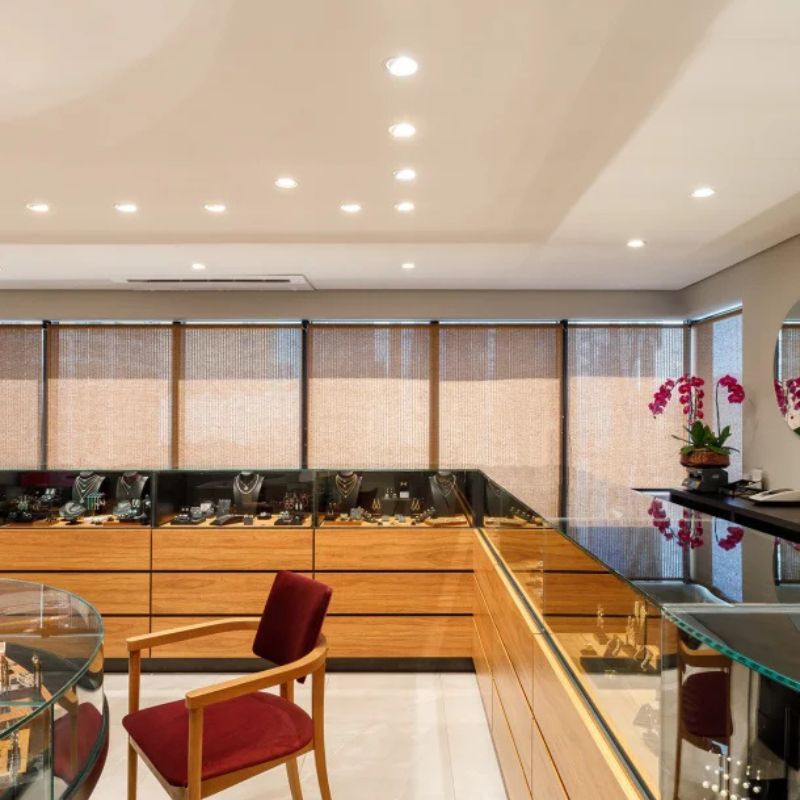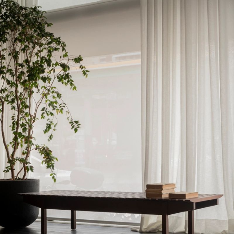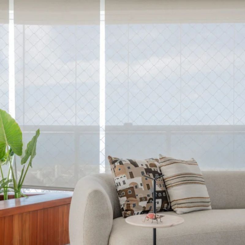 Com estrutura minimalista e acabamento impecável, a Rolô é formada por um tubo de alumínio e tecidos de alta performance, que se desenrolam de forma contínua e silenciosa. Está disponível em tecidos decorativos, telas solares ou versões blackout, atendendo diferentes intensidades de luminosidade e estilos de projeto.