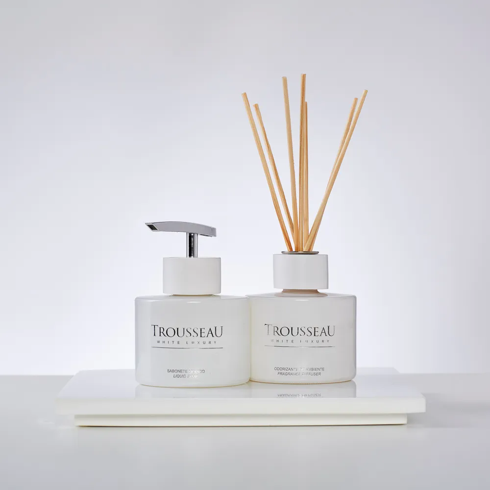 A linha White Luxury traz uma combinação elegante de fragrâncias leves e frescas, com notas de Pêssego, Mandarin, Gotas de Orvalho, Jasmim e Chá Branco. O Sabonete Líquido limpa com suavidade, deixando a pele delicadamente perfumada e com agradável sensação de frescor.