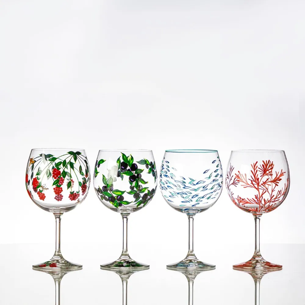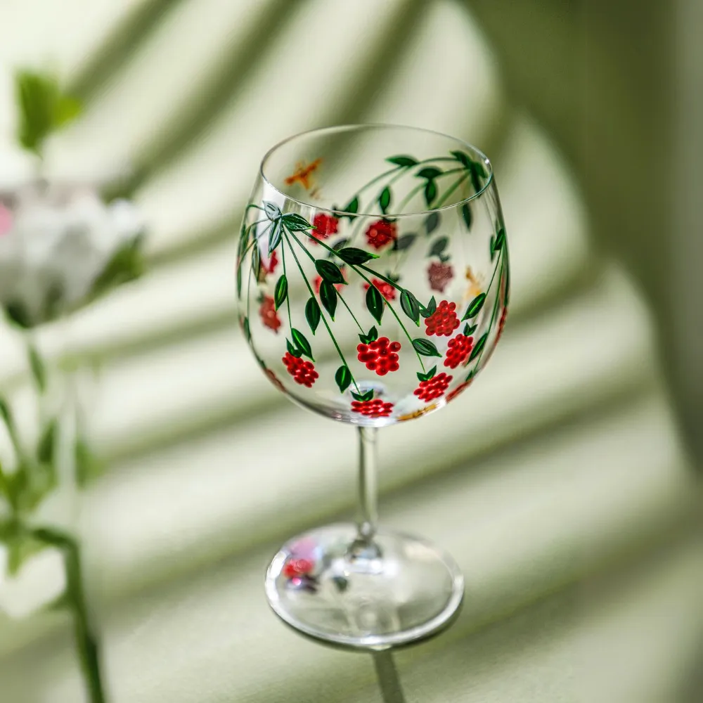 A coleção Antonieta traz uma delicada estampa floral branca, pintada à mão, inspirada na elegância e no romantismo do período francês. A taça em cristal com revestimento de titânio, com capacidade de 600 ml, é ideal para bebidas coloridas, unindo sofisticação e contemporaneidade. A coleção é limitada e possui também um outro modelo de taça para completar seus momentos.